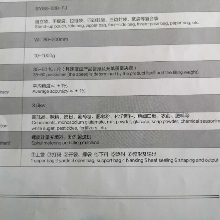 1、本机代替传统手工包装,实现企业产品包装自动化,提高企业生产效率,大幅降低产品成本。3、本机使用的是的预制好的包装袋。成品包装袋图案##,封口质量好,档次高。5、机器的包装范围广泛。根据包装物料不同选择