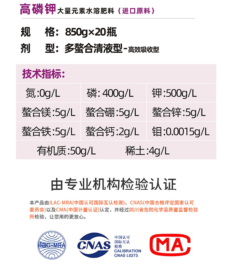 产品名称:大量元素水溶肥 含量:0-400-500+TE