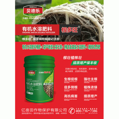 有机水溶肥料桶肥贝德乐亿亩田根多旺有机肥品牌:贝德乐产地:项城型号:根多旺重量:20kg规格:20kg/桶根多旺:生根促根 强壮主根 促多侧根 植株浓绿 高抗病害 提质增产产品说明:本品是通过微生物发酵技术生产浓缩