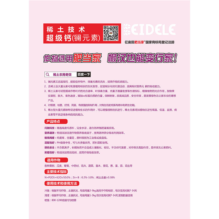 1、镧元素又名钙,能锁住作物中、微量元素的流失,提高作物抗病能力。