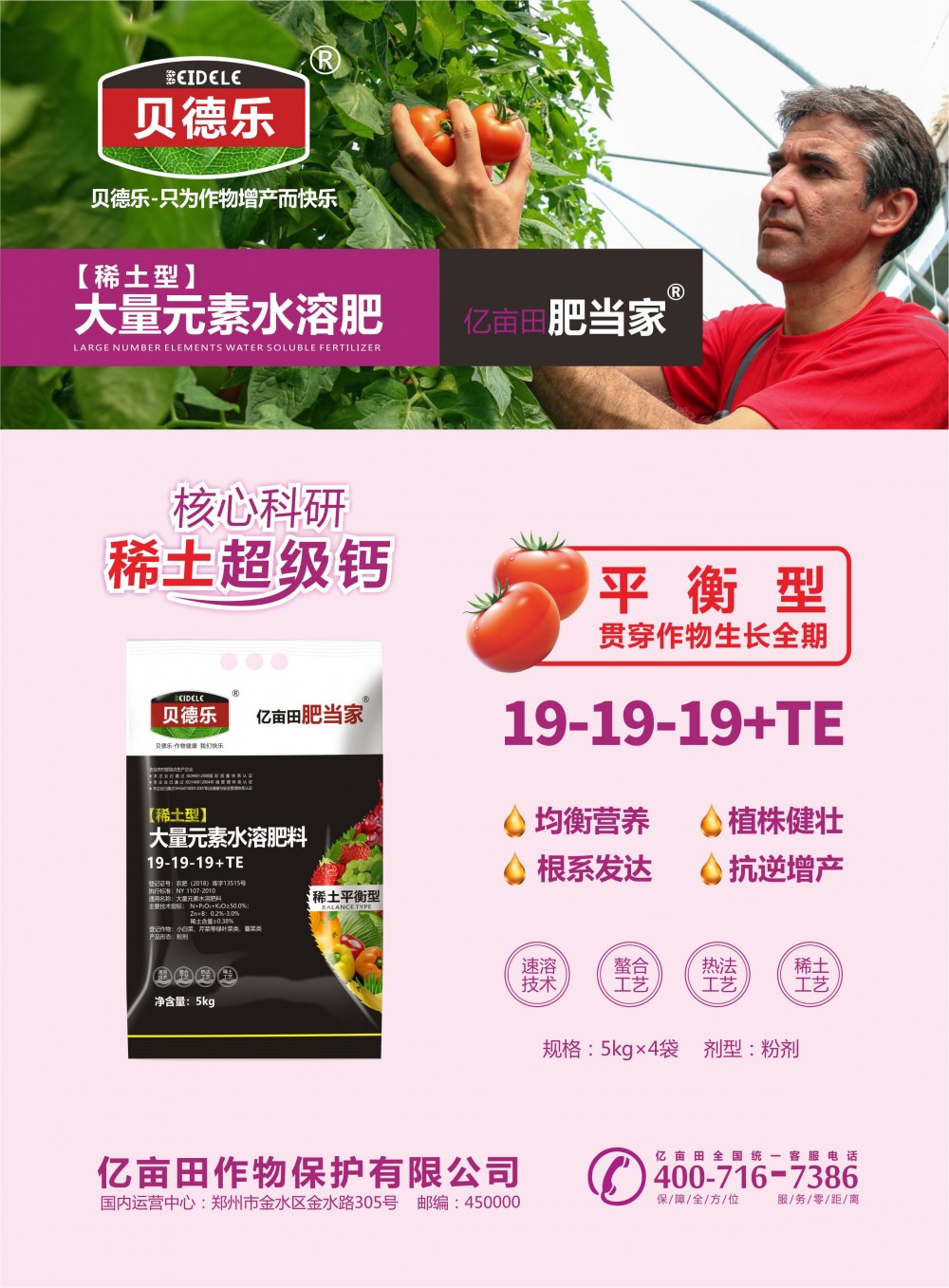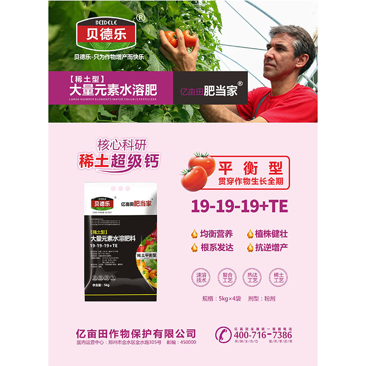 以上价格均为零售价,具体可联系我们:18736024915(微信同号) 免费提供全年施肥方案和技术支持! 大量元素平衡型贝德乐水溶肥料亿亩田有机肥品牌:贝德乐型号:平衡型含量:19-19-19+TE,稀土≥4g/L平衡型:均衡营