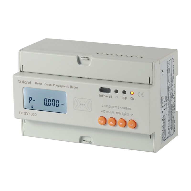 农田灌溉预付费电能表:DTSY1352三相预付费电能表分别用于计量额定频率50Hz的三相交流有功电能,具有预付费控制、负载控制、时间控制及RS485通信等功能,性能指标符合GB/T17215.321-2008标准。下面是它的主要功能特点: