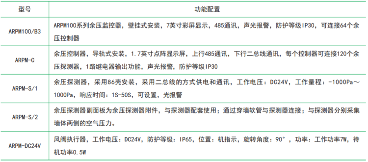 余压监控系统由余压监控器(主机)、余压控制器、余压探测器、风阀执行器、系统监控专用软件等部分或全部设备组成满足并高于GB51251《建筑防烟排烟系统技术标准》、GB50016《建筑设计防火规范》和GB50098《人民防空工程设计防火规范》等相关国家标准中的功能需求。