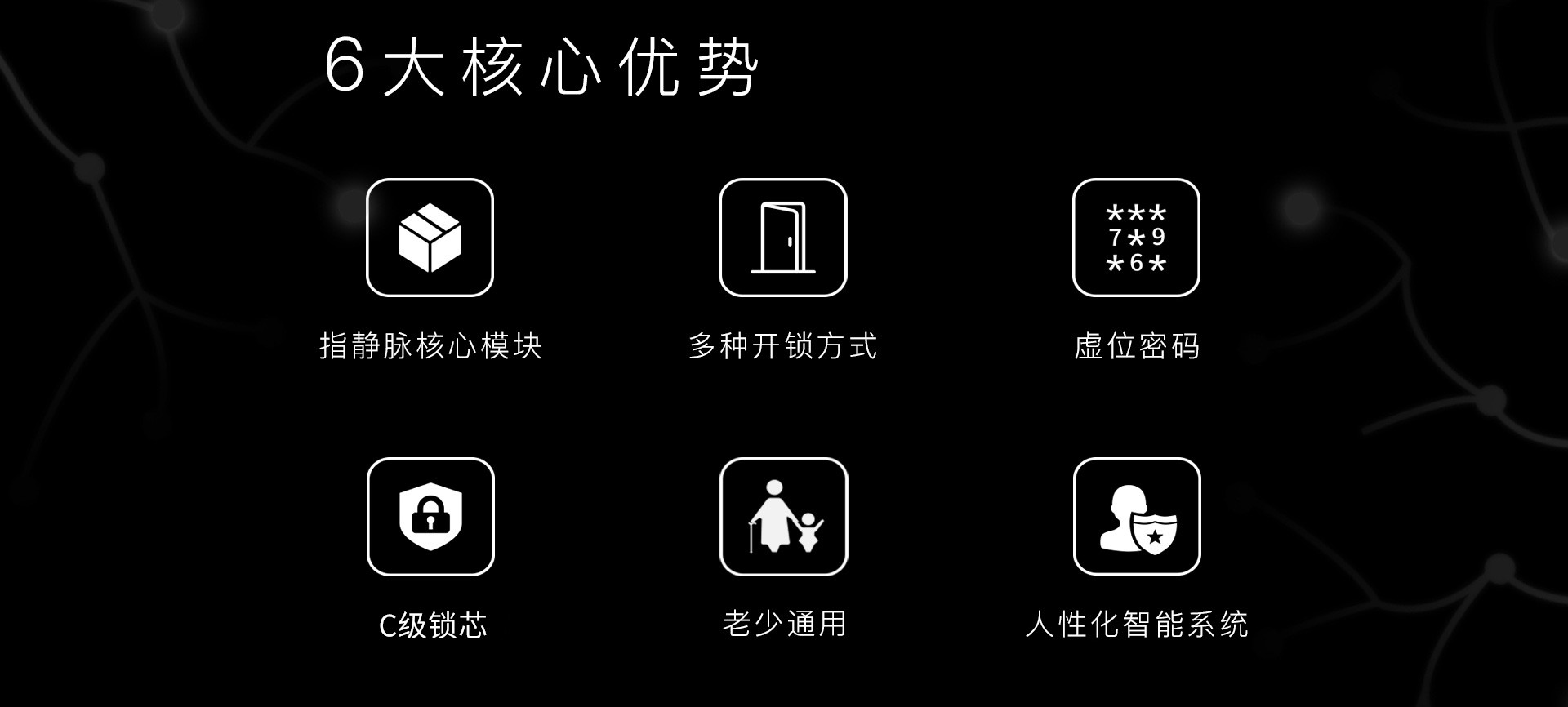智能门锁领域,指静脉技术克服了传统指纹识别速度慢,手指有污渍或手指皮肤脱落时无法识别等缺点,提高了识别效率,增加了门锁的安全性。如果家中有老人、小孩,也可完全放心使用,微盾指静脉智能锁的“钥匙”藏在血管里,安全稳定、认定主人,且不会受表皮粗糙、外部温度、外部湿度等影响,
