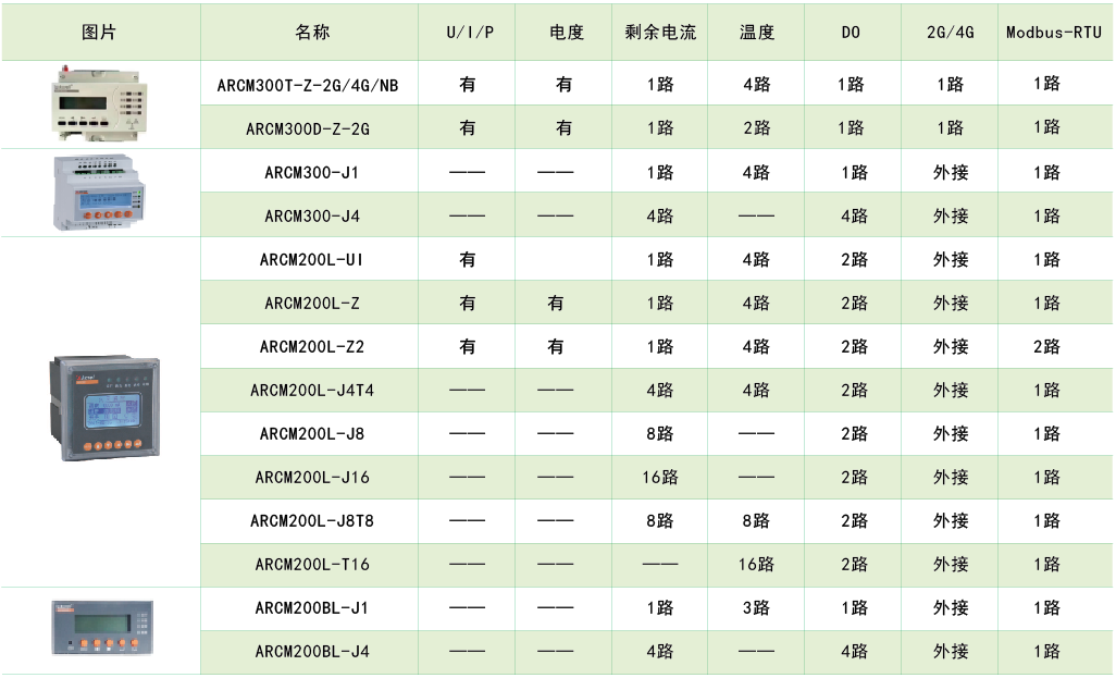 注:以上配置为针对1个回路选型,其中剩余电流互感器应根据现场回路电流大小选择,根据实际三选一。