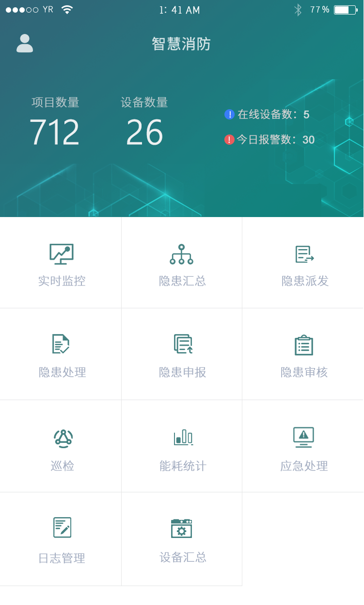 APP支持Android、iOS操作系统,方便用户查看电气火灾、防排烟、消防水、消防设备电源、防火门、消防设备管理、视频监控、火灾报警等子系统的实时监控数据、报警信息、能耗统计等。