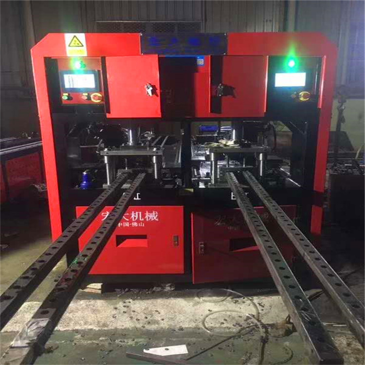 适用于各种爬架,方管,不锈钢防盗网(菱形防盗网、梅花管防盗网、园管方管防盗网、护栏、货架、扁铁、扁钢、槽钢、角铁等冲孔使用)、楼梯扶手、护栏、各类鞋架、衣架不锈钢管(圆、方管)、锌钢、彩钢、铁管、铝合金、货架等冲孔,护栏枪尖一次冲压成型,整机自带杆刻度尺,、冲口平整,可容易调节对穿孔、单面孔,可根据客户需求定做多个工位的冲床。是不锈钢及扁铁、扁钢、槽钢、角铁加工户和其他管材、型材加户的加工设备