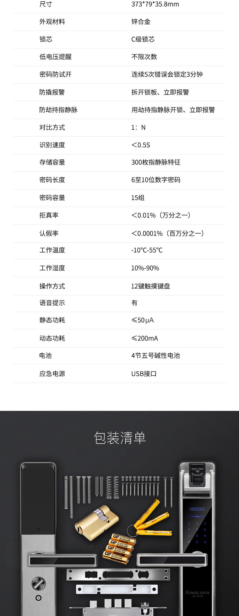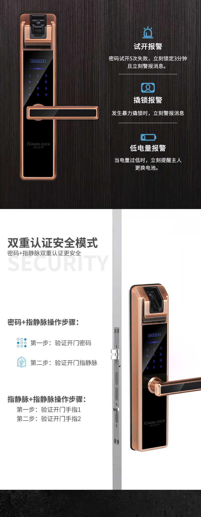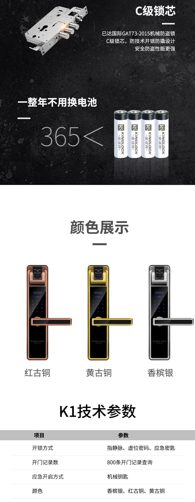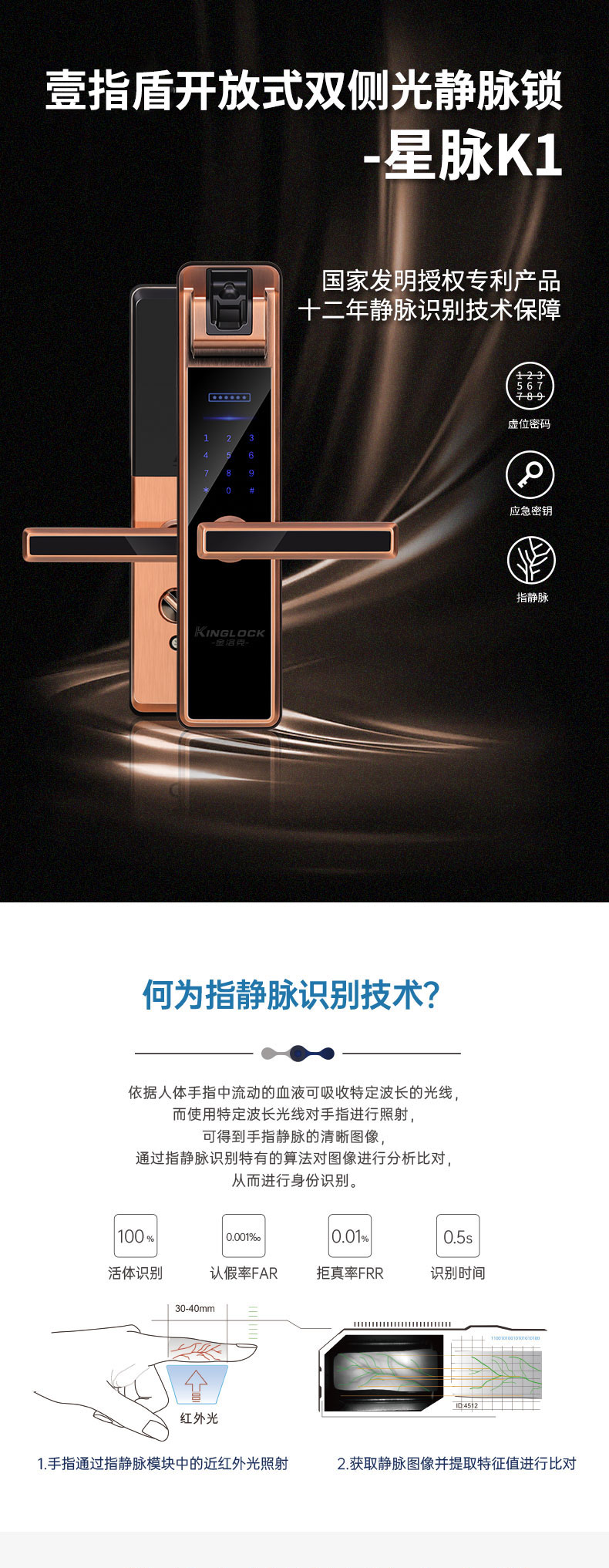 壹指盾指静脉智能门锁 星脉K1直板密码锁 静脉电子门锁家用防盗门 C级锁芯 国标锁体(诚招代理)