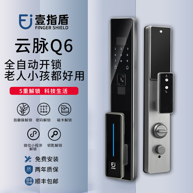 壹指盾指静脉Q6 全自动安防智能家居智能锁 电子密码智能指静脉门锁(诚招代理)