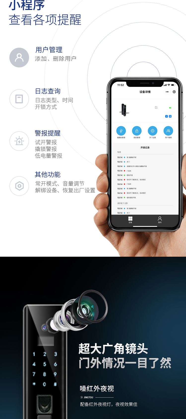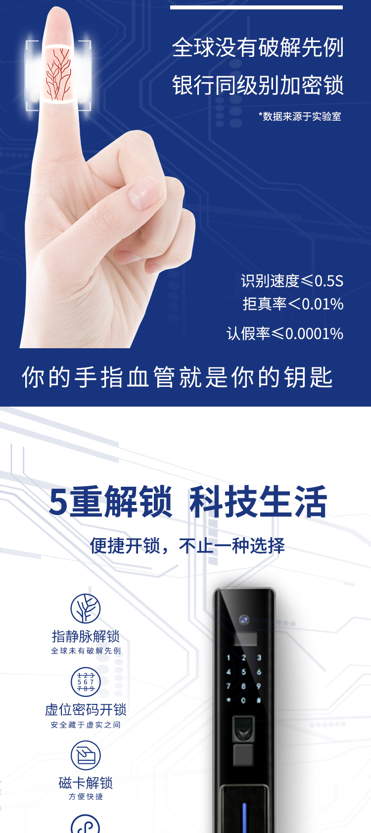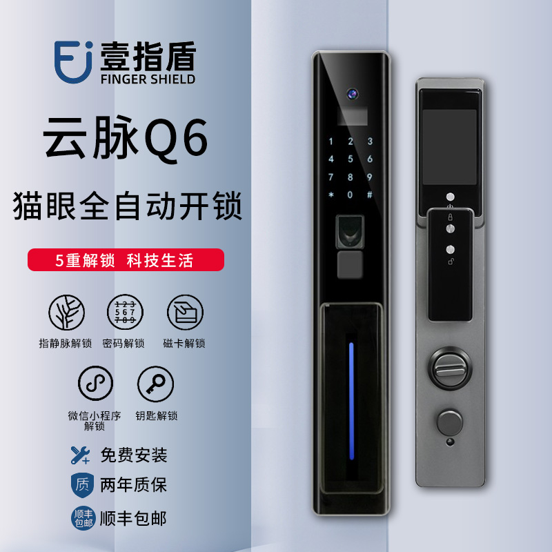 壹指盾指静脉Q6 全自动猫眼安防智能家居智能锁 电子密码智能指静脉门锁(诚招代理)