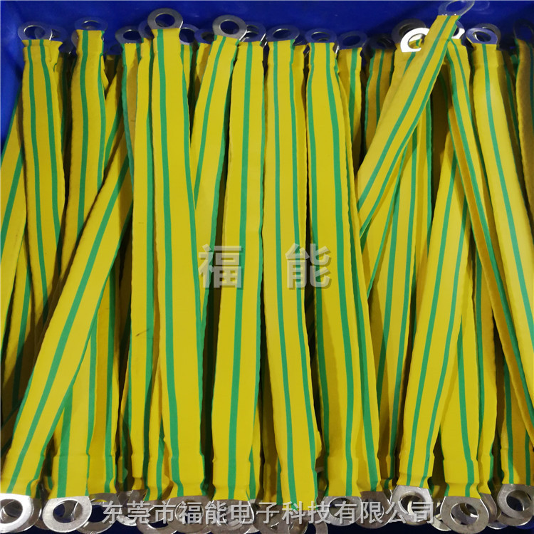 铜编织设备跨接线三C认证黄绿多芯铜导线、端子线,连接线,铜软连接线,采用国标CCC认证 RV BVR多芯软黄绿双色电缆线制作,发货快 价格优,默认孔径5MM,可定制任意孔径和长度,请用户放心订购;连接线因其颜色由黄、绿组成,故又称黄绿线,在导电系统中通常会用的线,起静电保护作用。