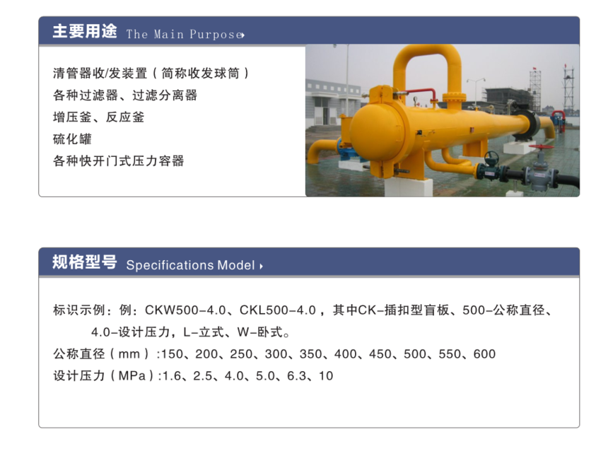 产品特征:快开盲板 产品规格 :可定制