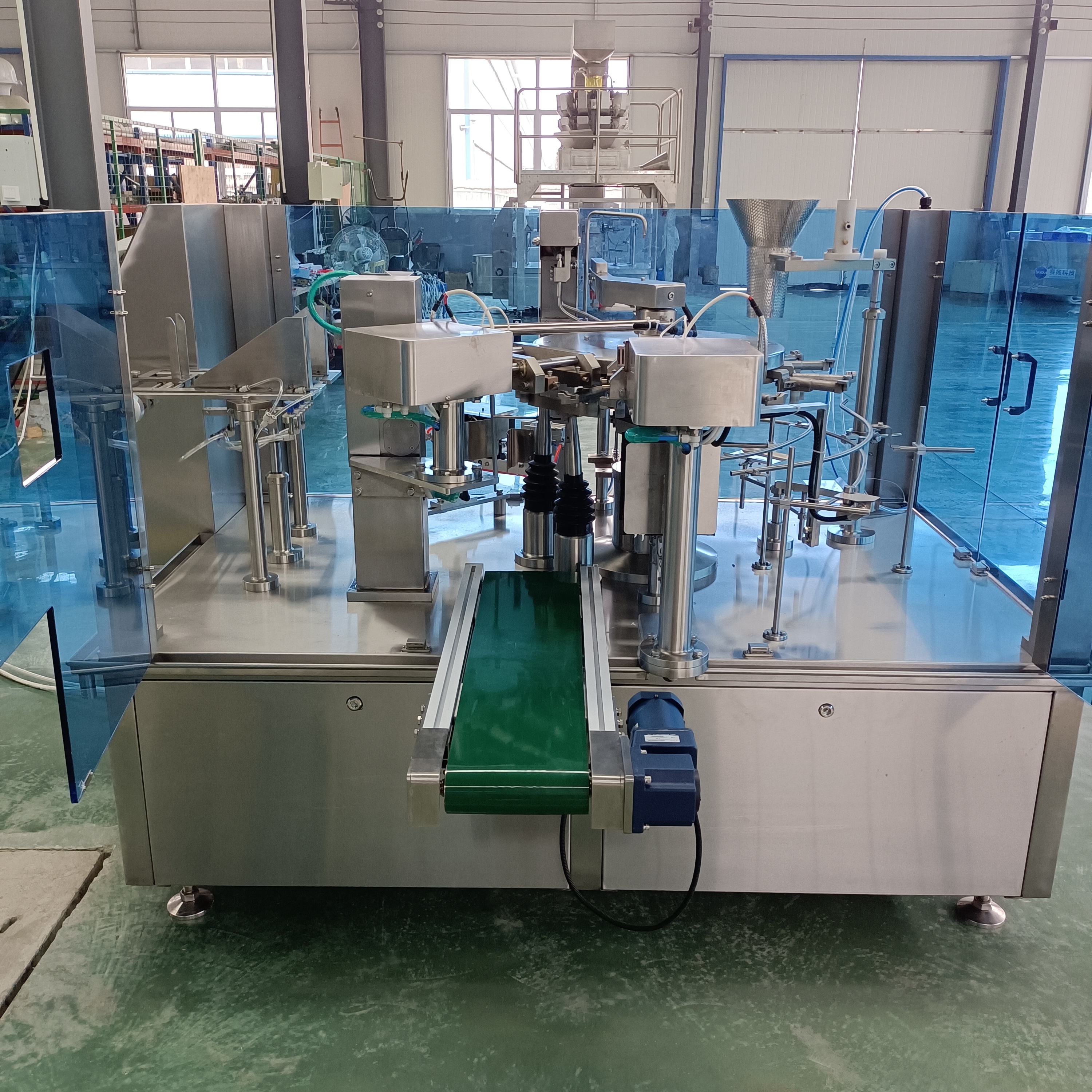 5、机器的包装范围广泛。根据包装物料不同选择不同填充装置,就可实现对固体物料、液体、酱体、粉剂、颗粒等各种物料的包装。