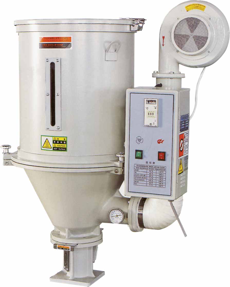 料斗干燥机是干燥塑胶原料最有效且经济的机型,可以干燥因包装、运送或回收而潮湿的原料,直接式的设计特别适合于直接安装在塑胶成型机上进行干燥。即快速又省空间。这种热风干燥机能提供的装料为12~1000公斤,分为多种机型。所有机型皆可选配24小时定时器。