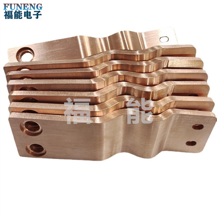 铜箔软连接、连接软铜排优点:截面积小,通过电流大、方便快捷,可进行手动安装、高柔软性,可手工折弯节省空间。