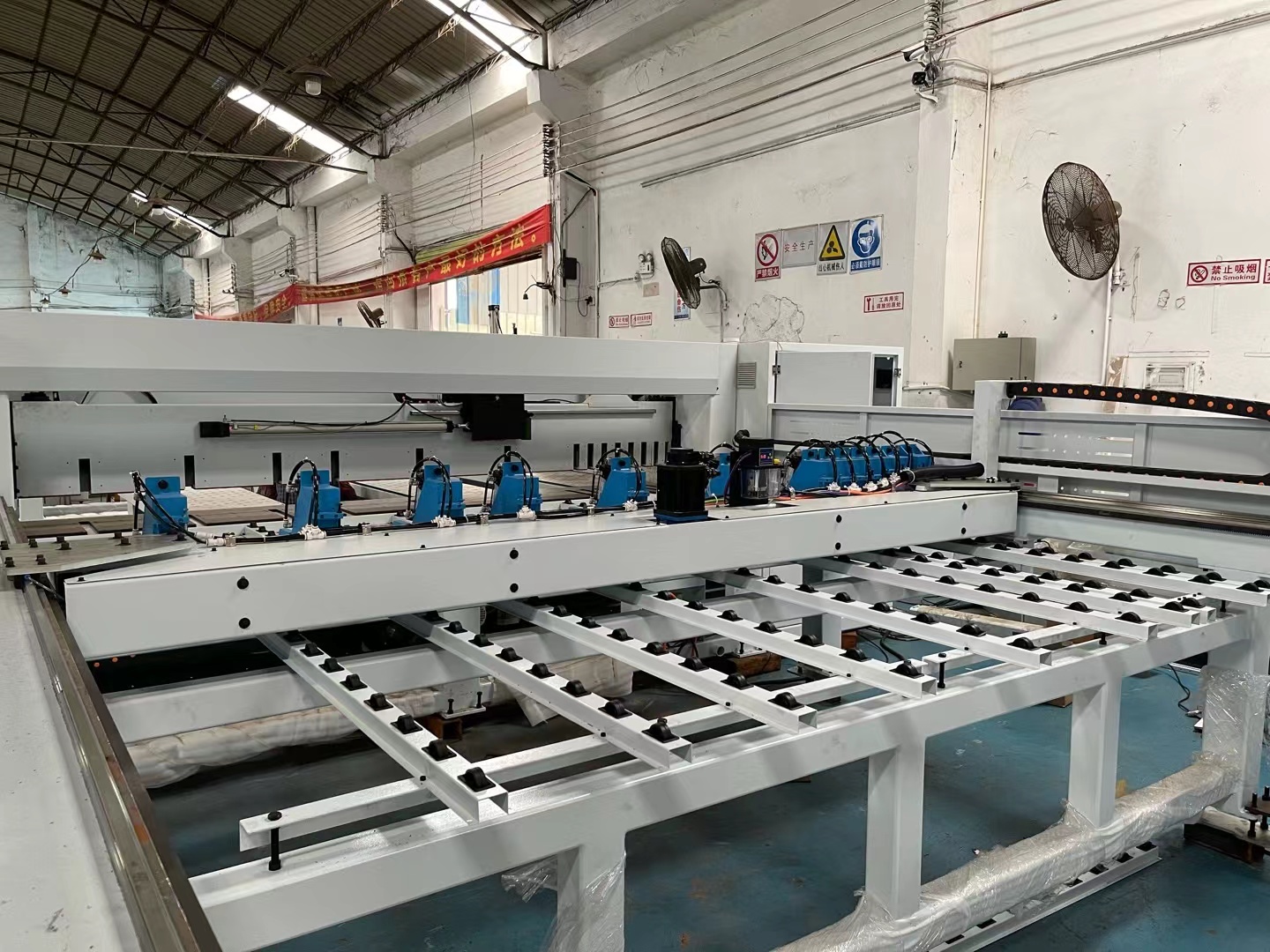 电子开料锯采用数控智能化设计,锯片可根据锯切情况自动调整转速,不会憋停锯片,同时实现堆垛与边角料清除的自动化,操作安全方便,运行平稳,噪音低;其自动锯切口质量高,板材端面光滑,不打边,成材尺寸标准;生产效率大幅提高,其综合效益相当可观。