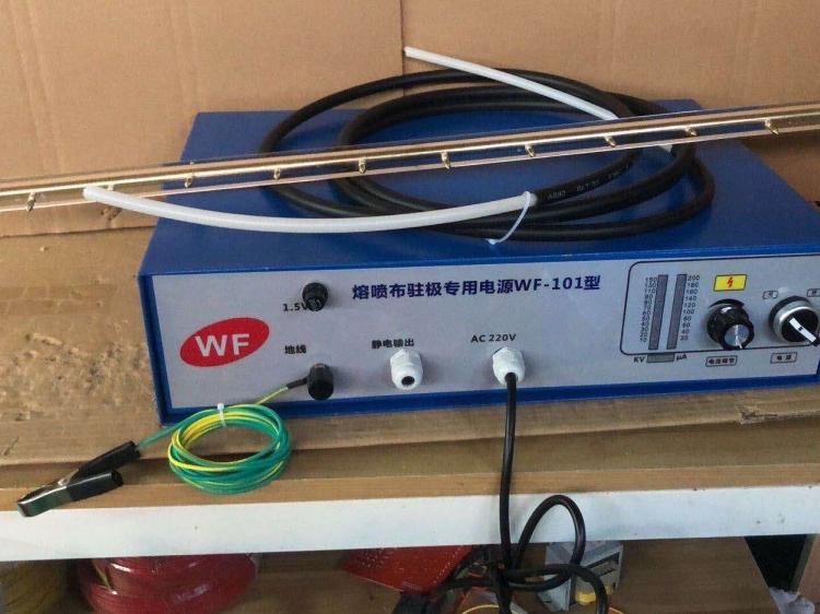 熔喷法工艺生产熔喷布,其设备主要包括:螺杆挤出机、熔体泵、换网器、熔喷装置、卷绕装置机、空气系统(热风机与加热器)等。螺杆挤压机作用是:将切片物料熔化;熔体泵其作用是:精确计量,控制产量和纤维的细度,